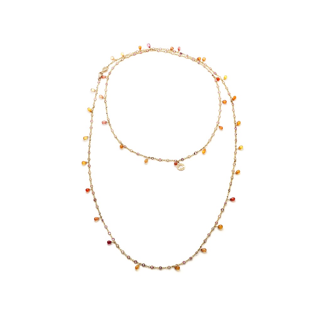 • Collana 100 cm in oro giallo con briolette in zaffiri orange