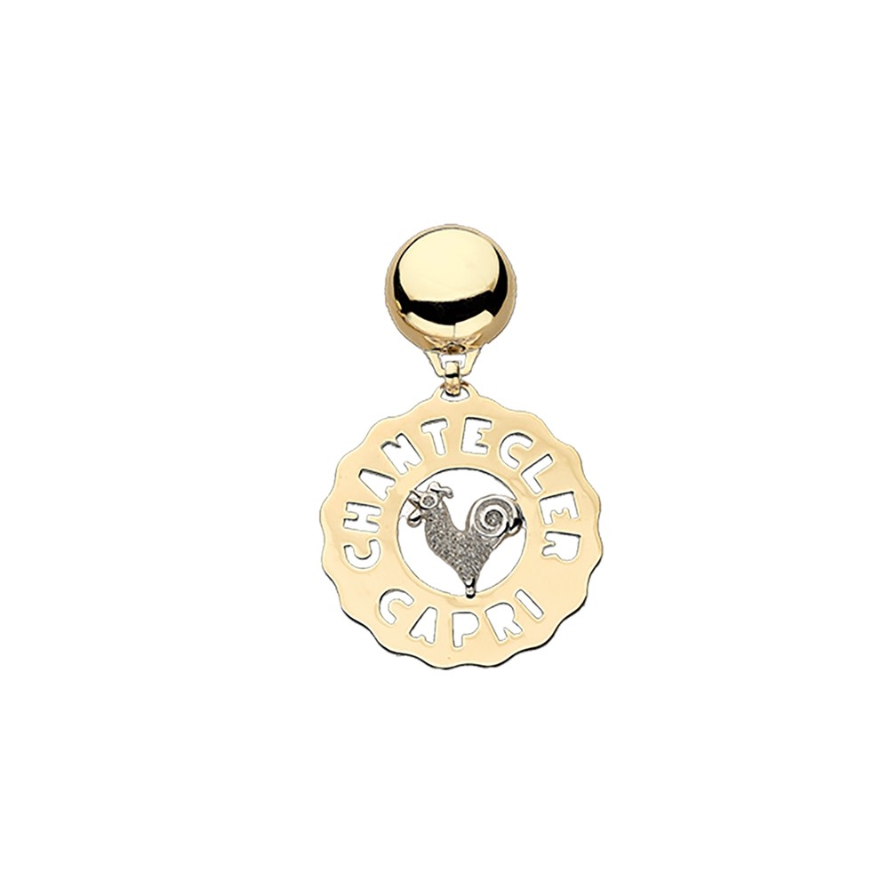 Figlia degli anni 80, Logo trasforma i simboli e i valori di Capri in un sentimento puro, potente, autentico. E’ una celebrazione della libertà di essere, un elogio al coraggio di osare. I gioielli oversize della collezione Logo danno forma e riconoscibilità a tutti quei momenti e a quei ricordi senza tempo, scolpiti nell’anima di chi, come noi, sa che Capri non è soltanto un’isola ma una passione profonda, un’emozione che non conosce limiti e vuole urlare al mondo la gioia di vivere. Orecchino logo gallo piccolo in oro giallo e bianco 18Kt e diamanti. Il prezzo è riferito al singolo orecchino. Collezione: Logo Oro GR 10,30 KT 18 Diamante CT 0,20 NR 19