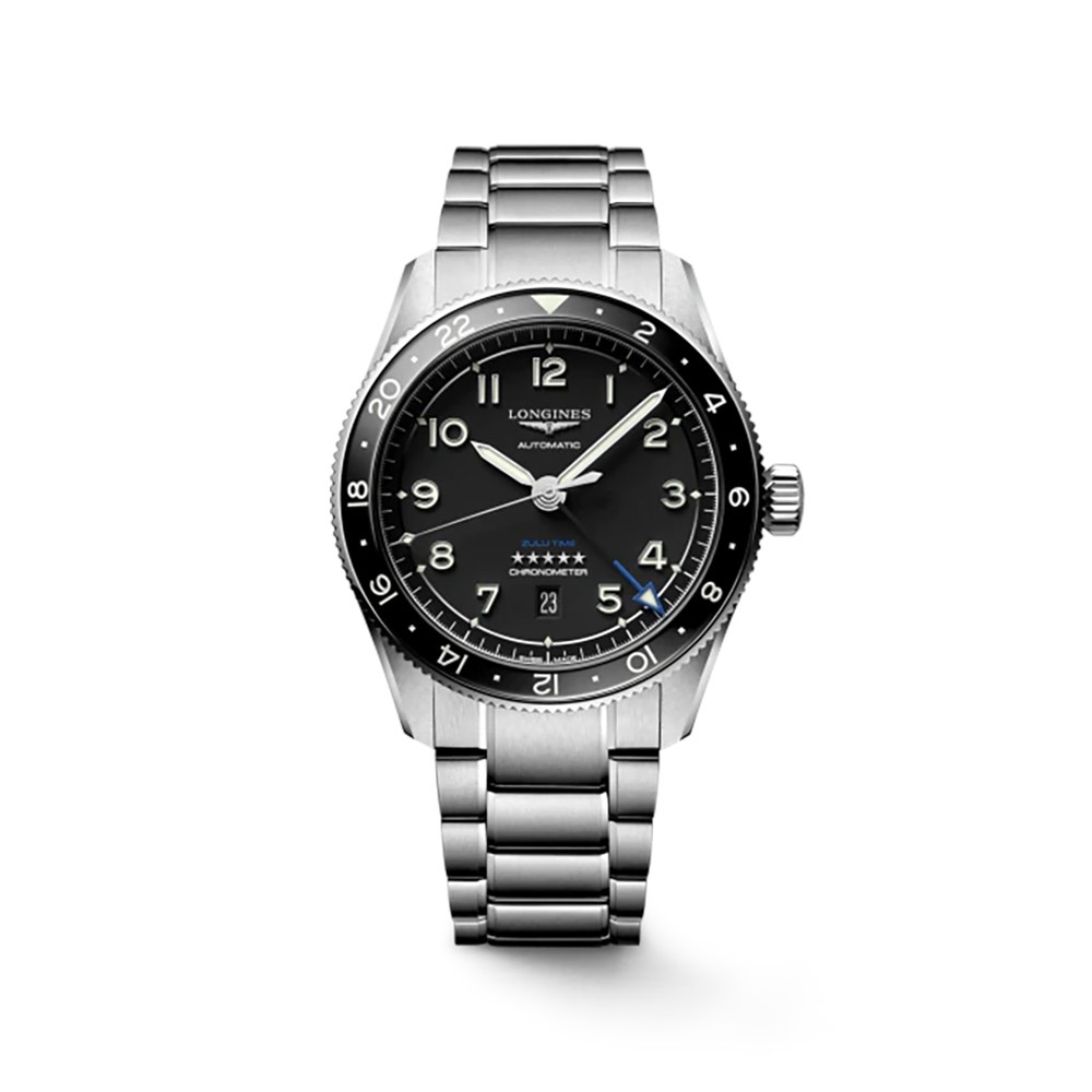 La collezione Longines Spirit riprende il design dei segnatempo che hanno accompagnato i celebri pionieri nella loro conquista dei cieli, dei mari e di nuovi territori. I leggendari aviatori ed esploratori come Amelia Earhart, Paul-Emile Victor, Elinor Smith e Howard Hughes si sono affidati al Marchio della clessidra alata durante i loro incredibili viaggi. Oggi, Longines presenta nuovi segnatempo che ne testimoniano lo spirito pionieristico. Un appassionato omaggio alle donne e agli uomini straordinari che, con i loro record, le loro imprese e il loro coraggio, hanno scritto capitoli di storia e spinto le nuove generazioni a superare i propri limiti. Tutti i modelli della collezione Longines Spirit sono dotati di tecnologie all’avanguardia che permettono di ottenere movimenti di grandissima precisione e vantano il certificato di cronometria. CASSA Forma: rotonda Materiale: acciaio inossidabile e lunetta in ceramica Vetro: vetro zaffiro antigraffio con trattamento antiriflesso multistrato su entrambi i lati Dimensioni: diametro 42,00 mm Distanza tra le anse: 22,00 mm Spessore: 13,90 mm Impermeabilità: impermeabile fino a 10 bar QUADRANTE E LANCETTE Colore quadrante: nero mat Indici: numeri arabi applicati Lancette: lancette argentate lucide Caratteristiche: Swiss Super-LumiNova® MOVIMENTO E FUNZIONI Tipo di movimento: automatico Calibro: L844.4 Descrizione del movimento: movimento meccanico a carica automatica con frequenza di 25'200 alternanze orarie e riserva di carica di circa 72 ore Funzione: ore, minuti, secondi e data; lancetta delle 24 ore con meccanismo dei fusi orari Funzione speciale: cronometro certificato COSC CINTURINO Materiale: acciaio inossidabile Fibbia: con chiusura deployante a doppia sicurezza e meccanismo di apertura a pressione