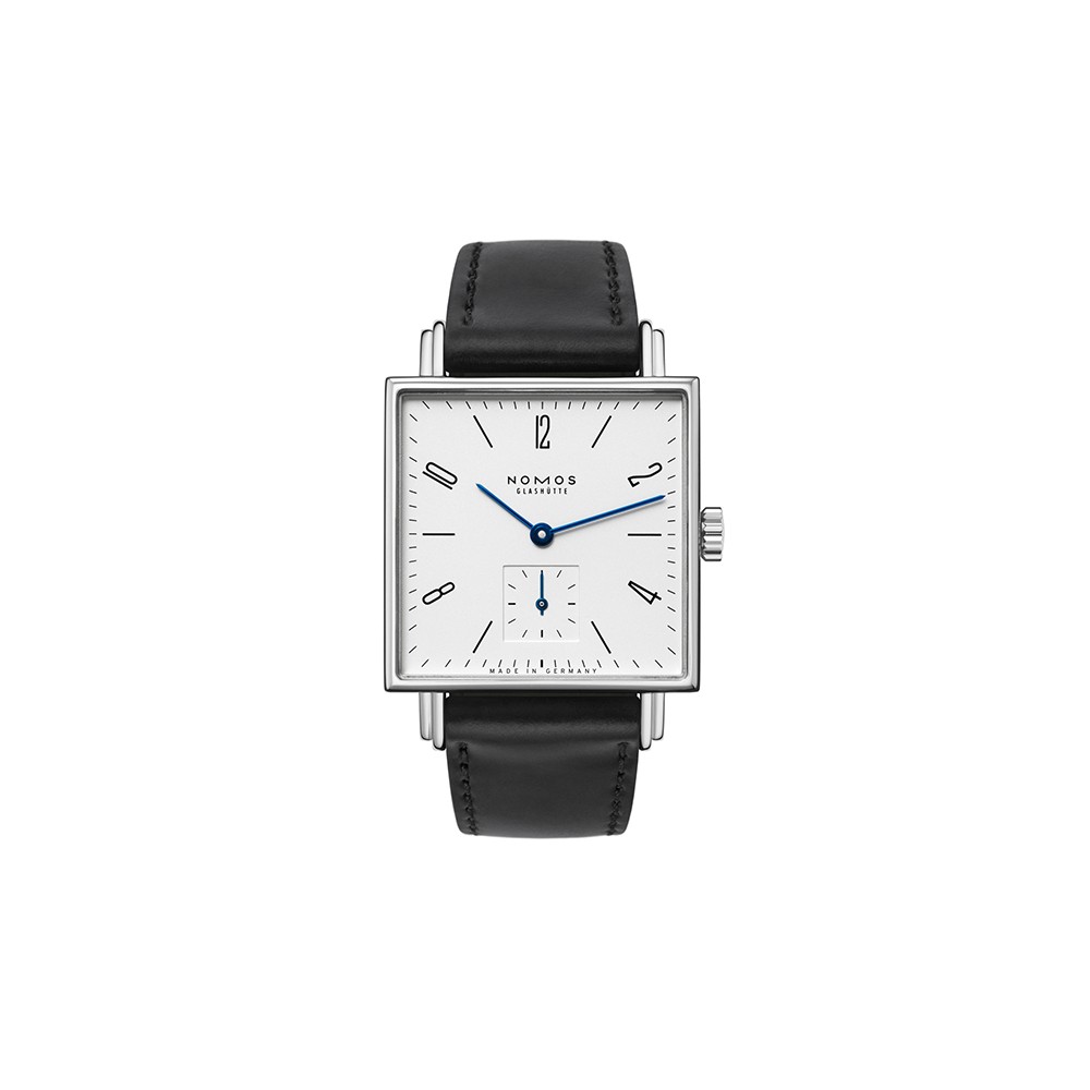 Modello: Tetra Fondello in vetro zaffiro. Calibro: ALPHA. Materiale cassa: stainless steel. Dimensioni cassa: 29,5 x 29,5 mm. Spessore cassa: 6,50 mm. Peso: 38grammi. Riserva di carica:43h. Resistenza all'acqua:3 atm. Cinturino: Horween Genuine Shell CordovanColore cinturino: black. Chiusura: NOMOS buckle clasp, stainless steel