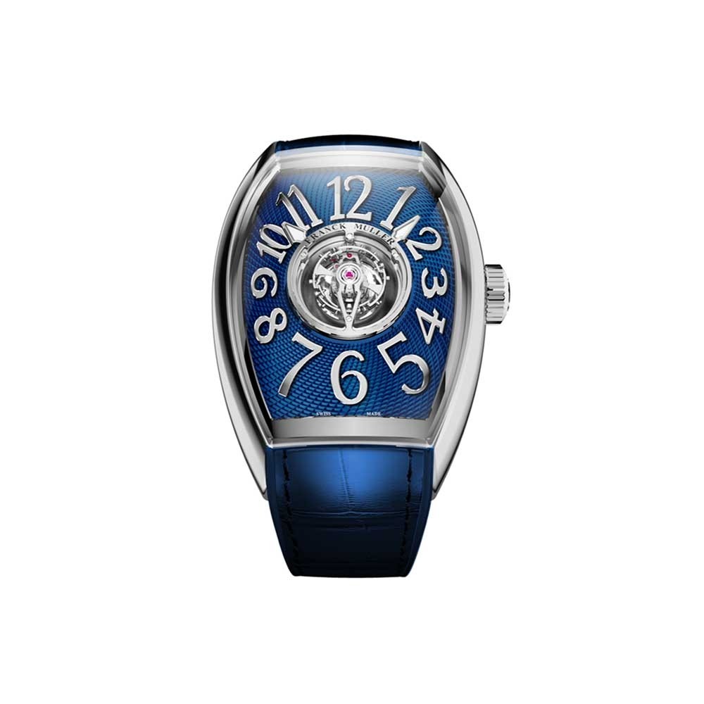 Dial Dial color: Blue Dial finish: Guilloché, Lacquered Case Case size: 59.70 X 40.16mm Case material: Stainless Steel Case back: Open Strap Strap material: Alligator Strap color: Blue Buckle type: Folding Clasp Functions Hours Minutes Tourbillon Special Features Water resistance 30m/3 bar