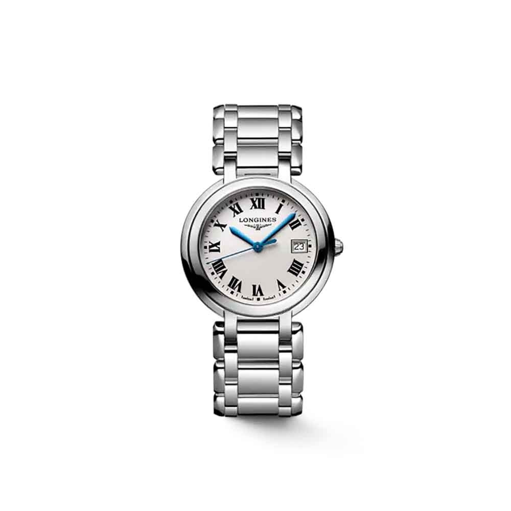 La Maison Longines è nota per i suoi modelli di orologi che propone sia alla clientela femminile sia a quella maschile, ma la collezione Longines PrimaLuna, presentata nel 2009, è destinata in esclusiva alle donne. La cassa caratteristica, come si evince dal nome, s’ispira alla luna e alla sua poesia. I quadranti argentati o madreperlati, impreziositi dai diamanti, evocano lo scintillio dell’astro notturno. I modelli sono dotati, a scelta, di movimenti al quarzo o di movimento automatico, in versione 3 sfere/data o con indicatore delle fasi lunari. CASSA Forma: rotonda Materiale: acciaio inossidabile Vetro: vetro zaffiro antigraffio bombato con trattamento antiriflesso multistrato sul lato interno Dimensioni: Ø 34.00mm Distanza tra le anse: 9.00 mm Spessore: 7.80 mm Impermeabilità: impermeabile fino a 3 bar Peso: 103.9 g QUADRANTE E LANCETTE Colore quadrante: argento Indici: numeri romani dipinti Lancette: lancette in acciaio azzurrato MOVIMENTO E FUNZIONI Tipo di movimento: al quarzo Calibro: L263 Funzione: ore, minuti, secondi e data Funzione speciale: E.O.L. CINTURINO Materiale: acciaio inossidabile Fibbia: con chiusura deployante a tripla sicurezza e meccanismo di apertura a pressione
