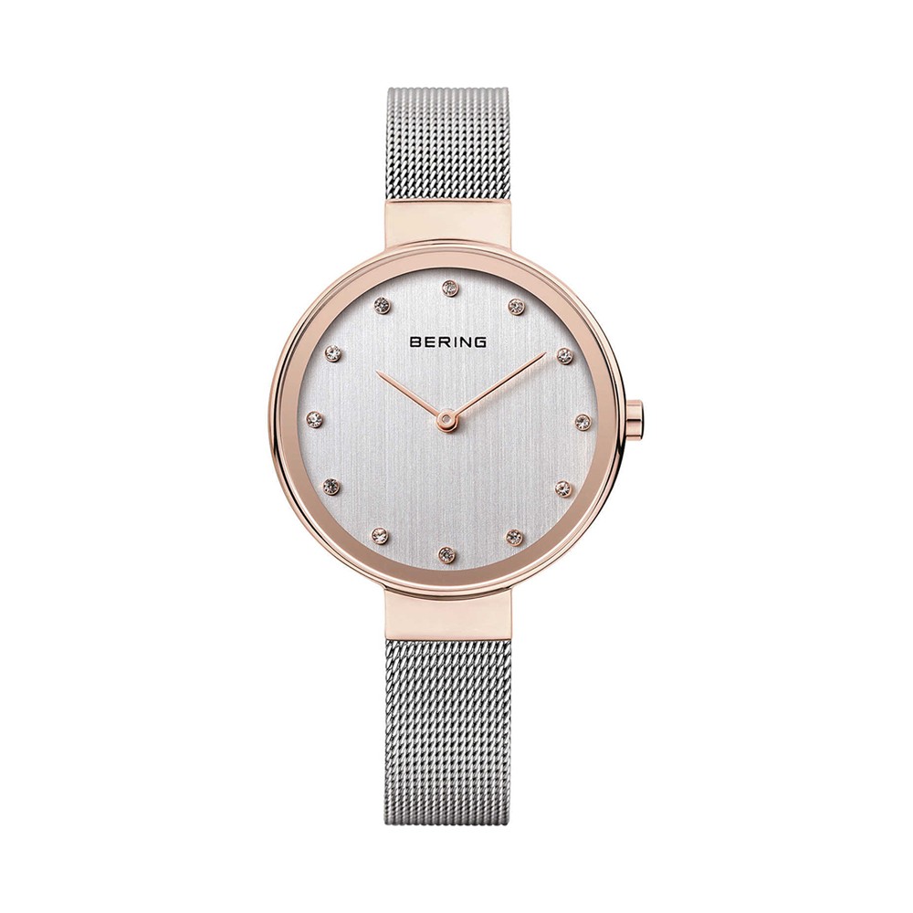 Orologio Con Cassa Della Dimensione Di 34 Mm, Di Colore Oro Rosa Brillante E Realizzata In Acciaio Inox. Modello Con Cinturino Di Colore Argentato, Realizzato In Milano, Con Chiusura A Scatto. Questo Orologio Ha Quadrante Argento, Con Vetro Zaffiro. La Finitura ? Ip Oro Rosa. Modello Con Movimento Al Quarzo E Resistenza All'Acqua Di 3 Atm. Caratteristiche Aggiuntive: Pietre Swarovski, 3 Anni Di Garanzia. La Referenza ? 12034-064