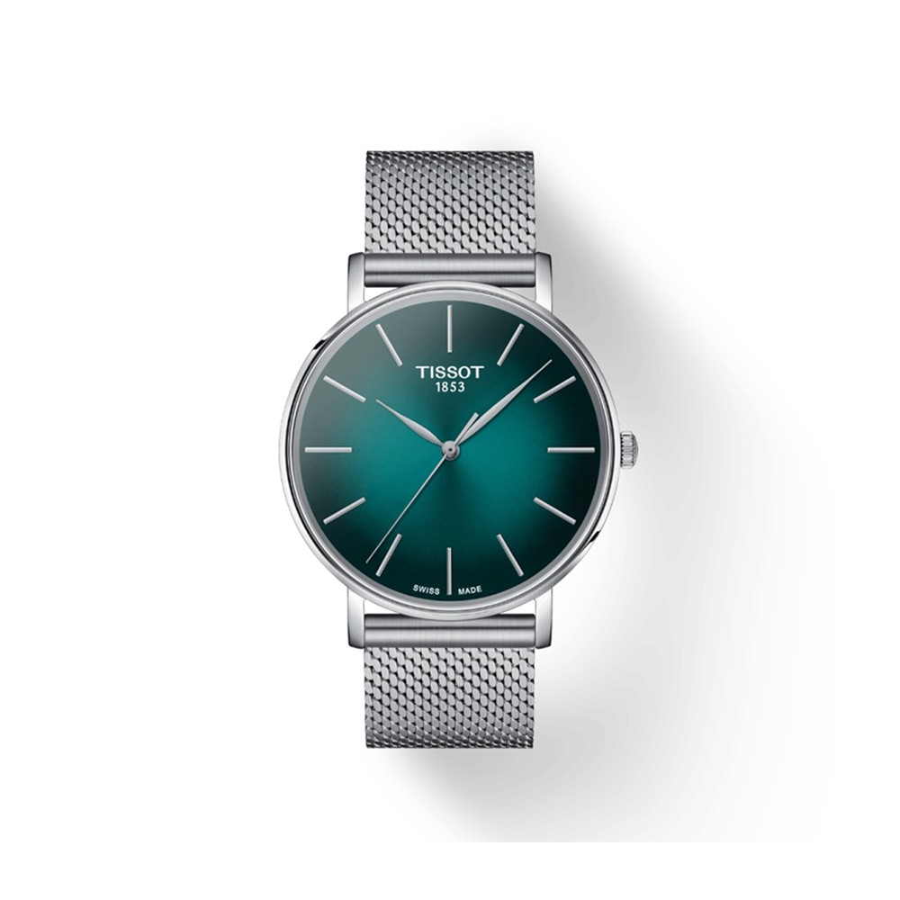 Il Tissot Everytime è un segnatempo sobrio, puro e chic che si adatta alle preferenze di chi lo indossa. L'Everytime è disponibile in una varietà di modelli di quadrante e opzioni di cinturino, che ti consentono di esprimerti. Con questo segnatempo Tissot, ogni momento è il tuo momento. Finalmente , il sistema di braccialetti intercambiabili a sgancio rapido offre la possibilità di cambiare i braccialetti senza alcun attrezzo, per la massima versatilità. INFORMAZIONI SULL'OROLOGIO Genere: uomo Garanzia: 2 anni di garanzia Resistenza all'acqua: Impermeabile fino a 5 bar (50 metri/165 piedi) Peso (g): 89 Collezione: T-CLASSIC SKU: T1434101109100 CASSA E VETRO Forma della cassa: rotonda Alette: 20.00 Materiale della cassa: Cassa in acciaio inossidabile 316L Vetro: Vetro zaffiro antigraffio Larghezza: 40.00 Lunghezza: 40.00 Spessore: 7.1 MOVIMENTO Quadrante: HMs Batteria: tipo di batteria Renata 371 Diametro (mm): 25.6 Gioielli: 3 Calibro: 11 1/2''' Movimento: svizzero, al quarzo Modello: ETA F06.412 Energia: quarzo QUADRANTE Indici: indici Colore quadrante: Verde sfumato CINTURINO Fibbia: bracciale intercambiabile a sgancio rapido, chiusura a gioiello con sicura Dettagli del cinturino: Acciaio inossidabile Riferimento cinturino/catena: T605047948 Colore cinturino: Grigio