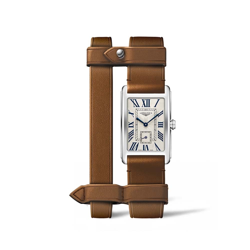 Fin dalla sua creazione, la collezione Longines DolceVita ha portato in tutto il mondo l'eleganza contemporanea della Maison orologiera Longines. Ispirata alla "Dolce Vita", è un inno alla dolcezza di vivere. Oggi, con un'interpretazione inedita dalle linee addolcite, si apre un nuovo capitolo della storia della collezione. Questi nuovi modelli sedurranno certamente le donne che hanno fatto del fascino uno stile di vita. CASSA Forma: rettangolare Materiale: acciaio inossidabile Vetro: vetro zaffiro antigraffio Dimensioni: 20,80 x 32,00 mm Distanza tra le anse: 15,00 mm Spessore: 6,90 mm Impermeabilità: impermeabile fino a 3 bar QUADRANTE E LANCETTE Colore quadrante: argento flinqué Indici: numeri romani dipinti Lancette: lancette in acciaio azzurrato MOVIMENTO E FUNZIONI Tipo di movimento: al quarzo Calibro: L178 Funzione: ore, minuti e piccoli secondi a ore 6 Funzione speciale: E.O.L. CINTURINO Materiale: cinturino in pelle Colore: marrone Fibbia: con fibbia