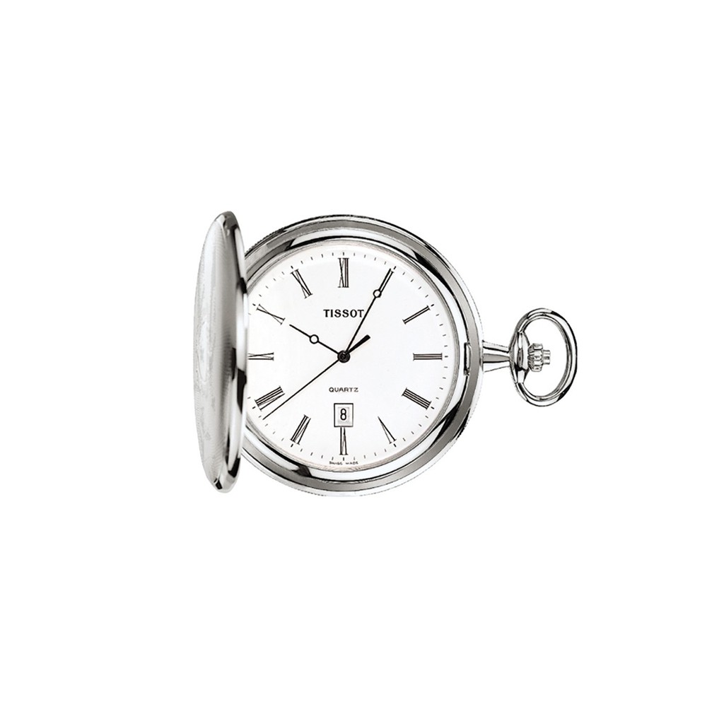 La collezione Tissot Savonnette propone magnifici orologi da tasca che riportano alla manifattura di un tempo, attraverso quel gusto retrò un po' nostalgico. Questi pezzi presentano il logo storico del marchio, che evoca la storia e la tradizione di cui Tissot è parte. Ampia scelta di modelli, per adattarsi ad ogni personalità. INFORMAZIONI SULL'OROLOGIO SKU: T83650813 Peso (g): 66 Collezione: T-Pocket Sesso: unisex Garanzia: 2 anni garanzia CASSA E VETRO Spessore: 10.2 Lunghezza: 50.00 Larghezza: 50.00 Materiale della cassa: cassa in ottone con finitura in palladio Anse: 0.00 Forma della cassa: rotonda Vetro: vetro minerale MOVIMENTO Energia: quarzo EOL Gioielli: 7 Modello: ETA 955.112 Movimento: Svizzero, al quarzo Calibro: 11 1/2''' Quadrante: HMSD Calibro diametro (mm): 25,6 Batteria: batteria tipo Renata 371 Funzioni: EOL (indicatore di fine vita della batteria) QUADRANTE Colore del quadrante: bianco Indici: romani CINTURINO Riferimento del cinturino/catena: T657047658